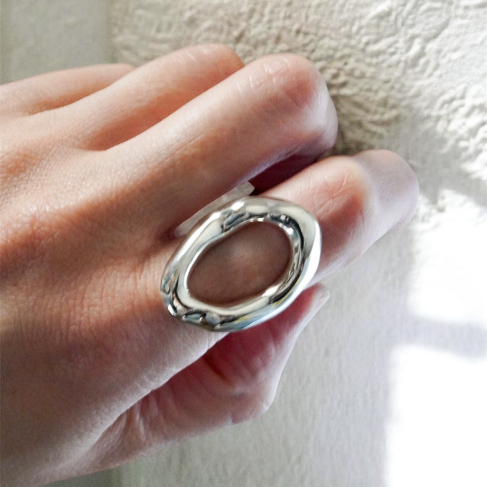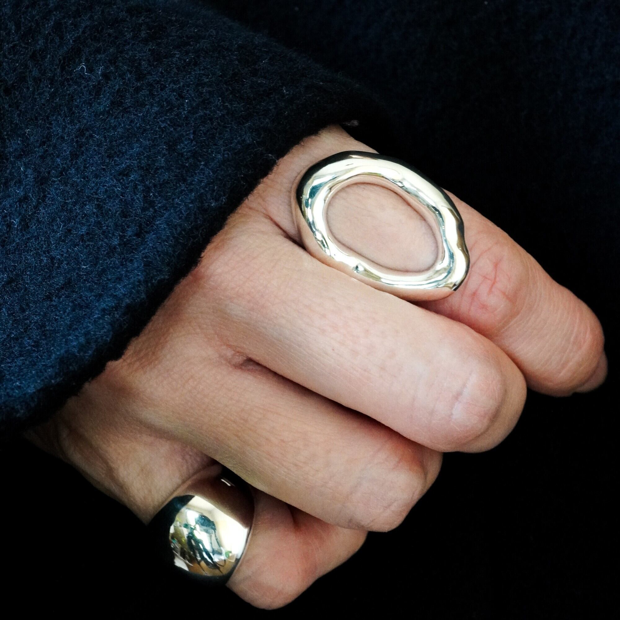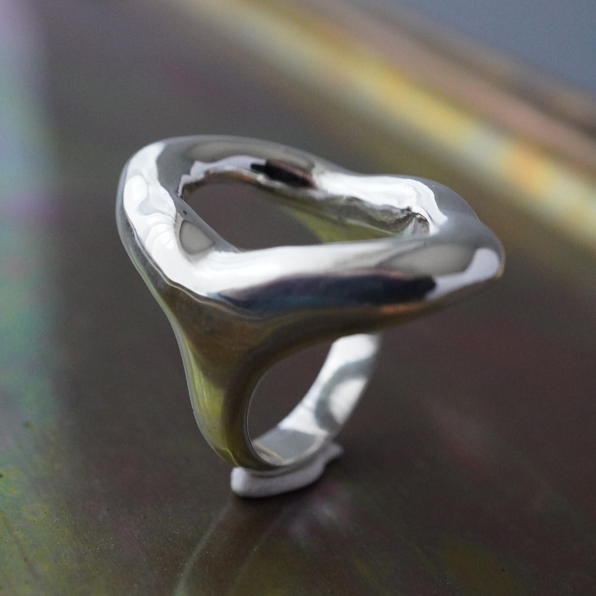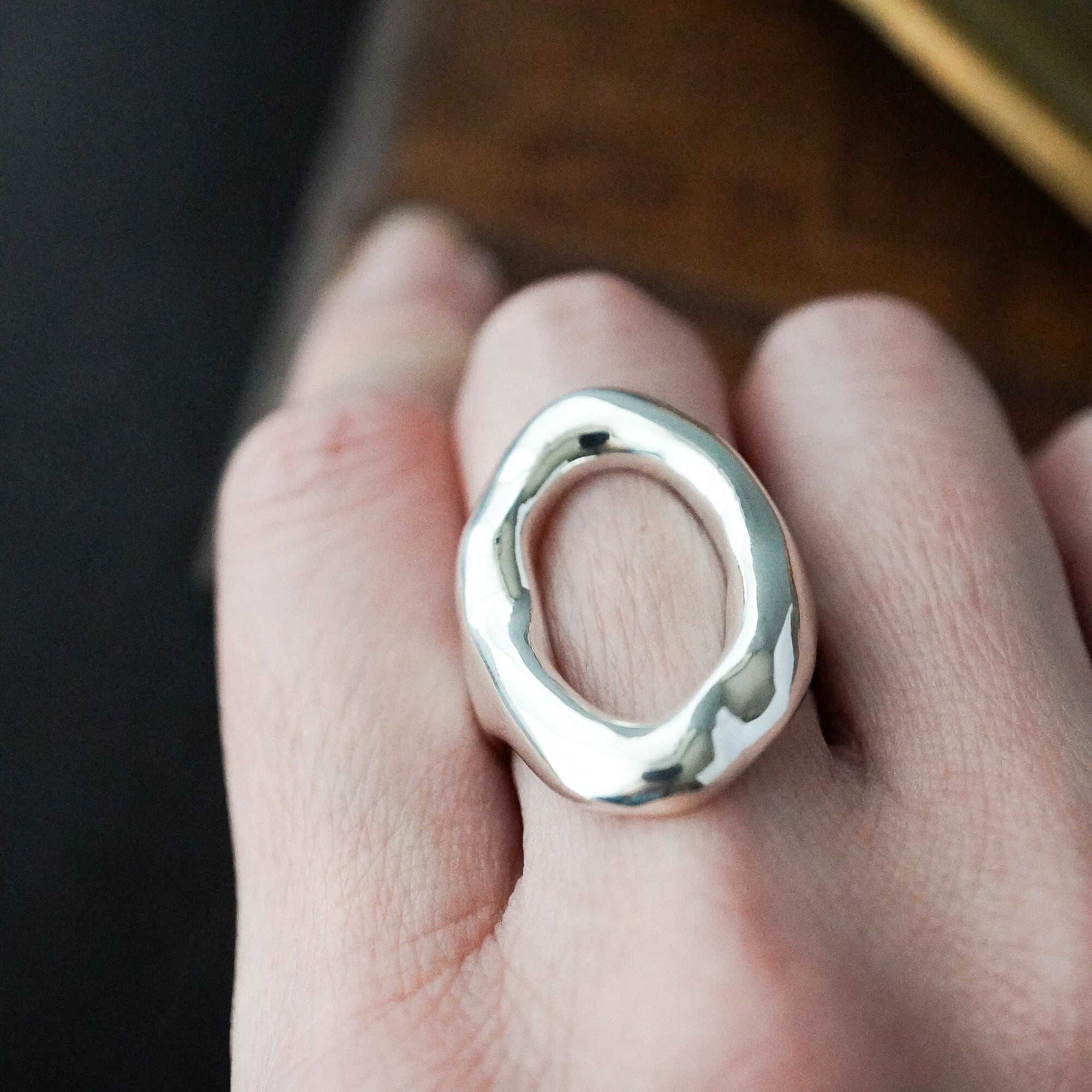 有機的にゆらぐ曲線と、鏡のように磨き上げた艶やかな表情が、指先にやわらかな光を集めます。