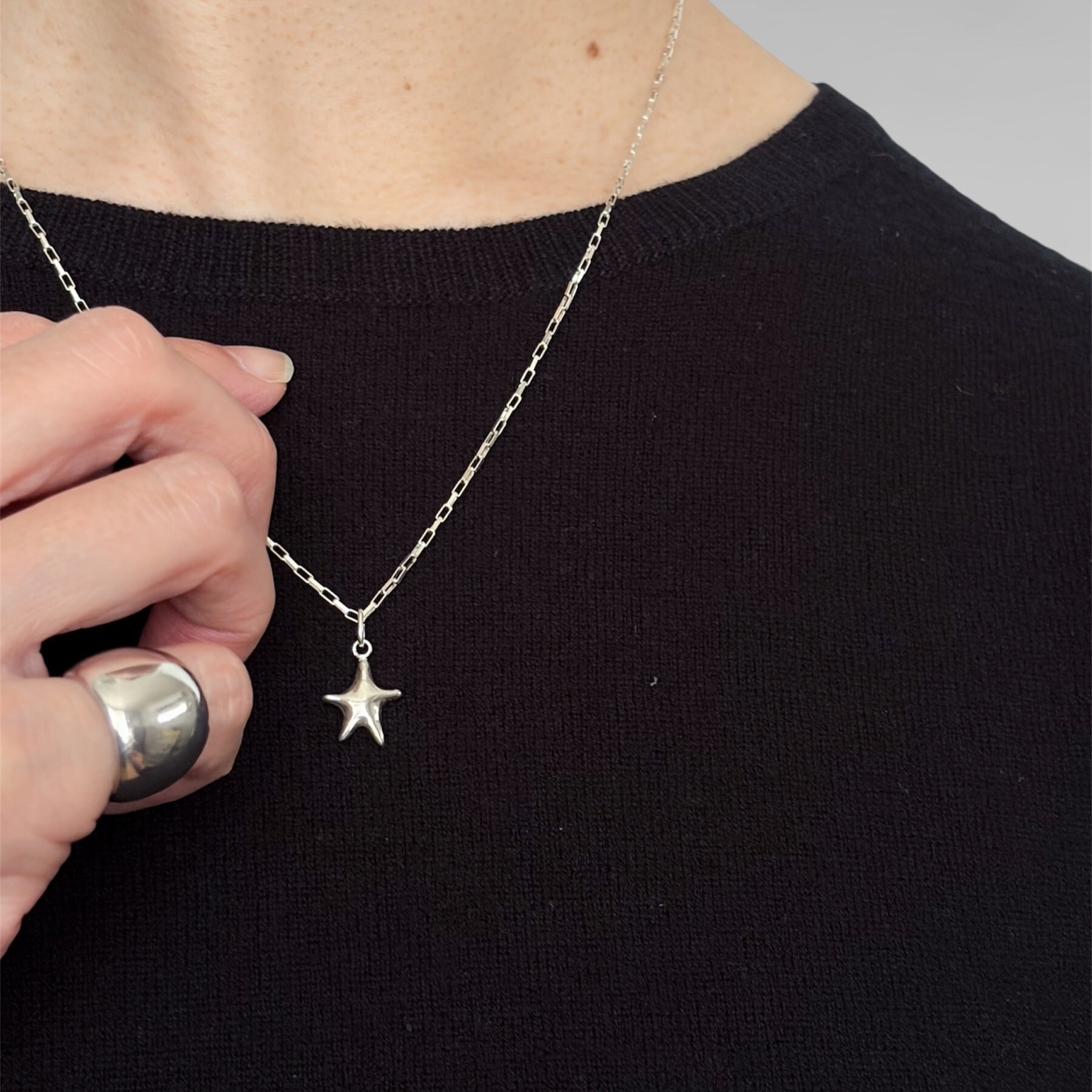 さりげない存在感で胸元を上品に彩る、スターシルエットのネックレス。